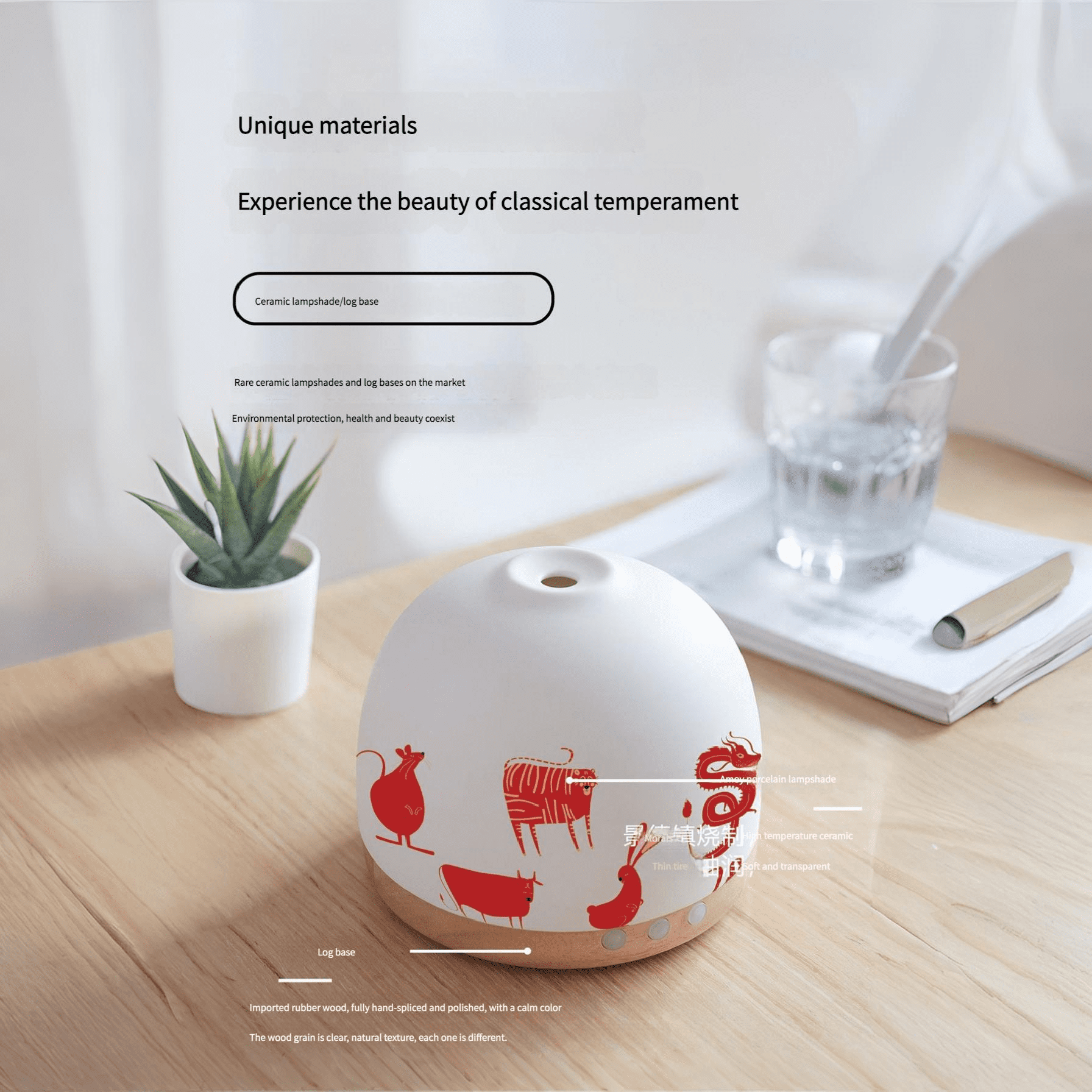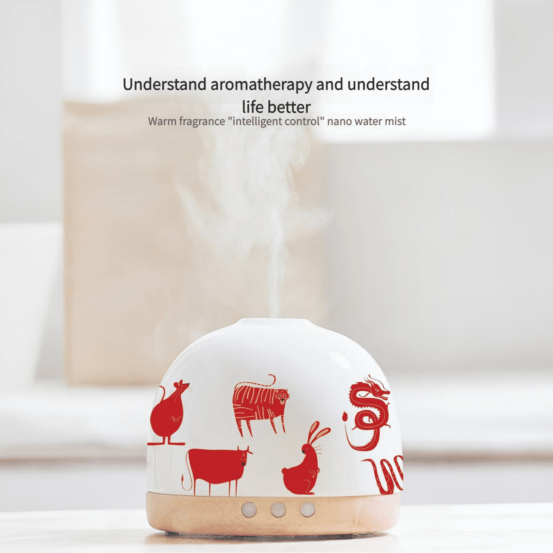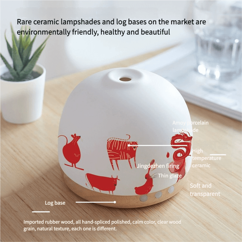 chinese zodiac ceramic solid wood aromatherapy diffuser ultrasonic humidifier essential oil aromatherapy diffuser timer night light national trend giftZenware Ceramic Aroma Diffuser & Humidifier | Wood Base
